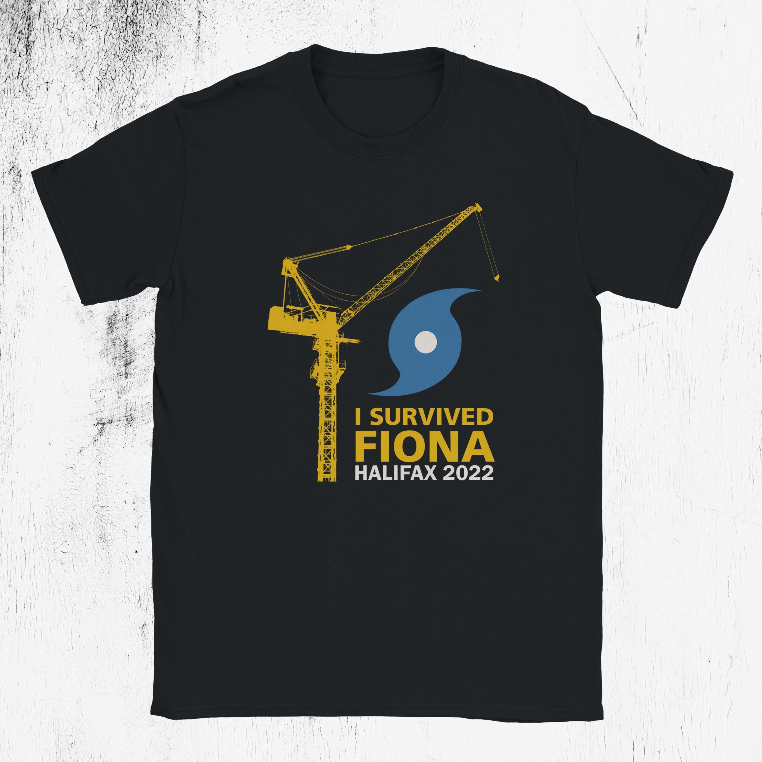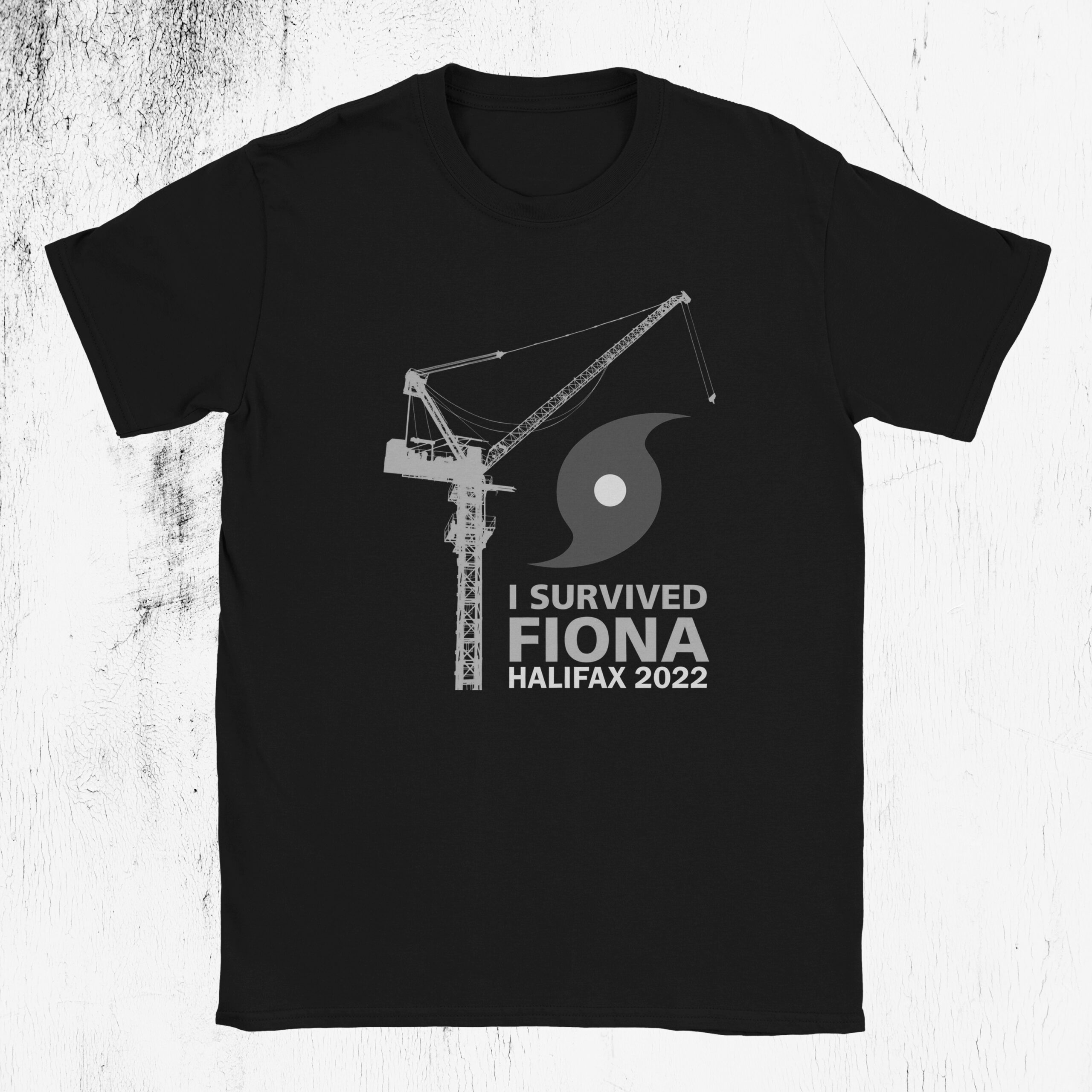 And so, with this shirt, we commemorate the loss of our beloved crane in 2019, and celebrate the resiliency of every crane that stood and withstood through Fiona.